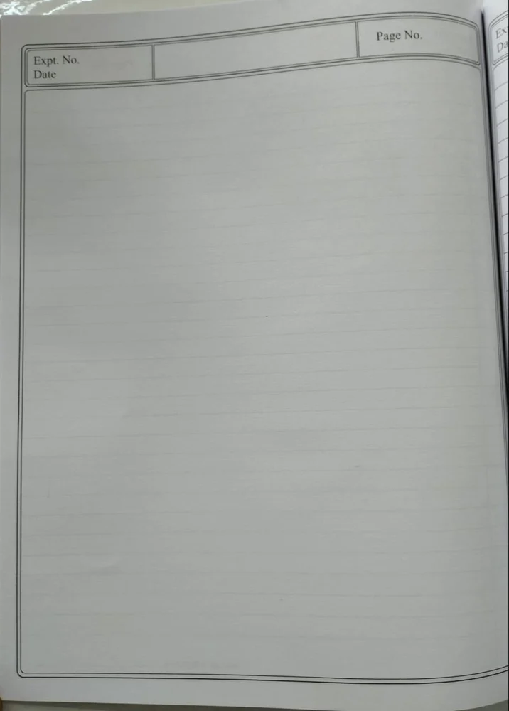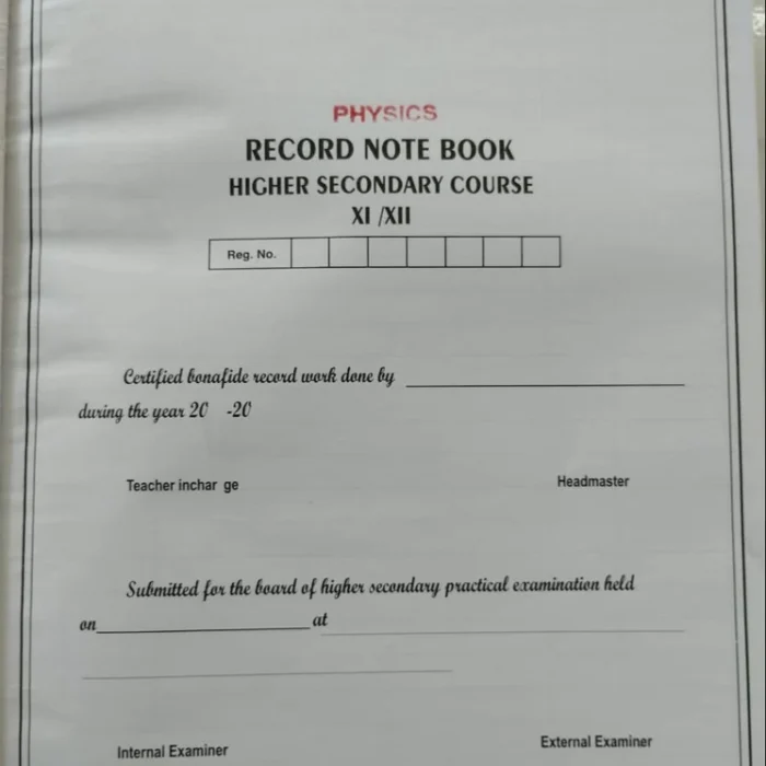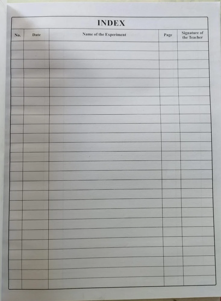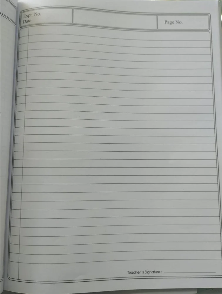 Crafted in a convenient A4 size, this record notebook features 80–100 single-line ruled pages made from high-quality 70 GSM paper, allowing for smooth writing and easy readability. The use of single-line ruling promotes neat documentation, while the generous page count ensures that students have enough space to complete full semester lab work without running out of room. Whether used for graphs, readings, or theoretical inputs, the layout supports academic excellence.