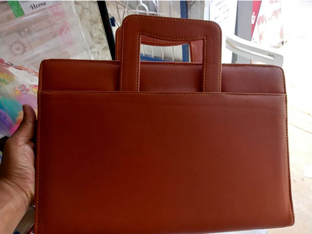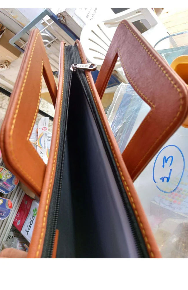 Presenting the Zip Type Brown Leather Office Leaf File – a sophisticated and functional solution for professionals seeking elegant document storage. Designed with a premium brown leather finish, this A4-size file exudes class while offering high utility for daily office use. Perfect for executives, corporate staff, or individuals who appreciate both style and structure in their workspace.
