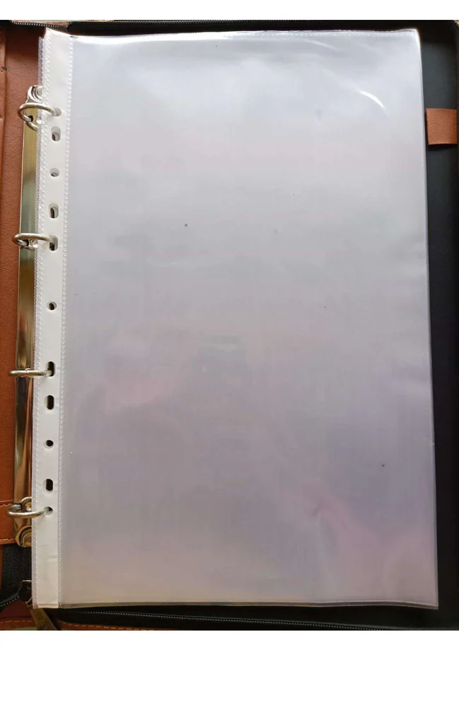 The hardcover exterior, made from fine leather, gives a luxurious feel and excellent durability. The non-printed cover ensures a clean and professional appearance suitable for all business environments. A smooth zipper closure secures all contents, providing protection from dust, spills, and loss — ideal for commuting professionals or on-the-go meetings.